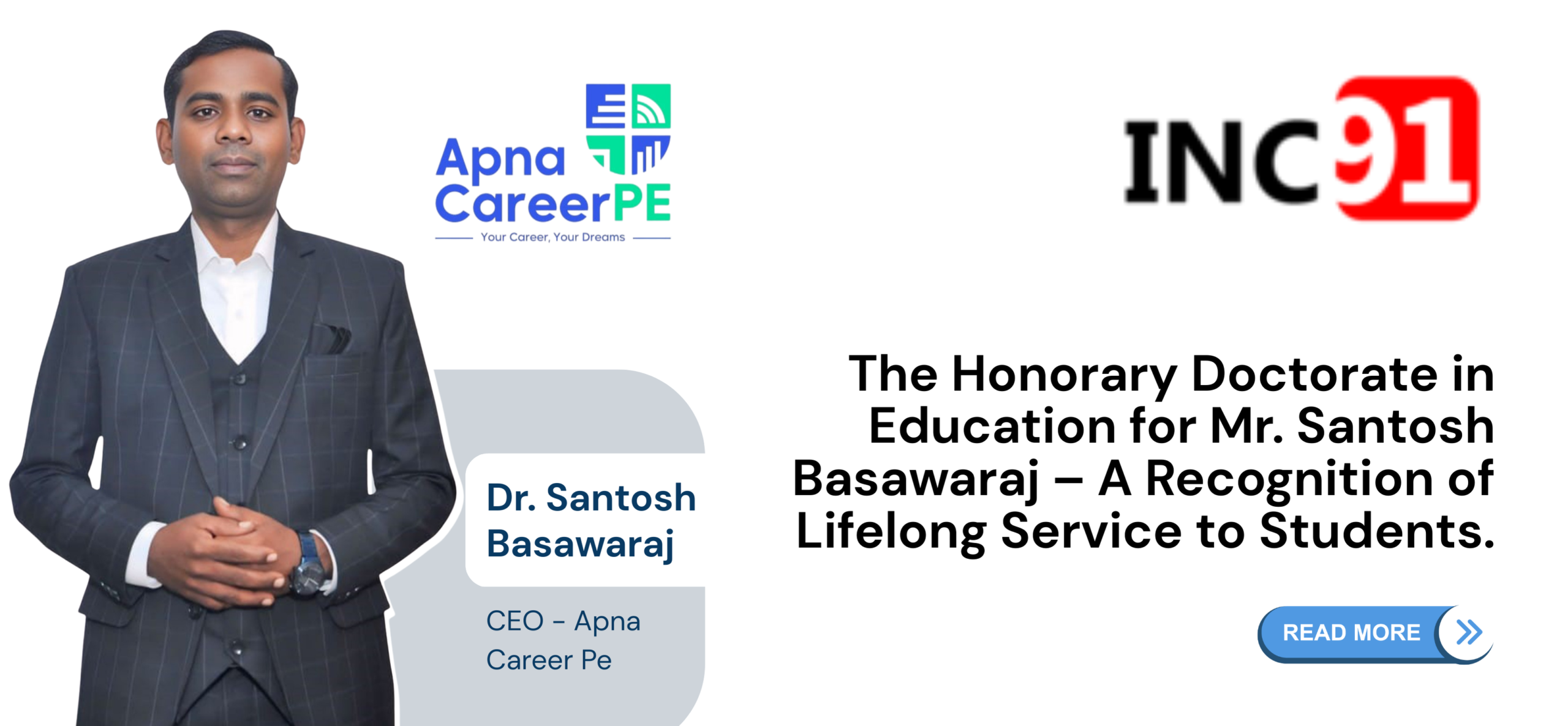 Receiving the Bharatiya Shikshana Ratna Award 2025 is a proud moment for Mr. Santosh Basawaraj and the entire Apna Career Pe team. His unwavering passion for teaching and mentoring has inspired countless students to believe in their potential and achieve their dreams through dedication, skill, and self-confidence.